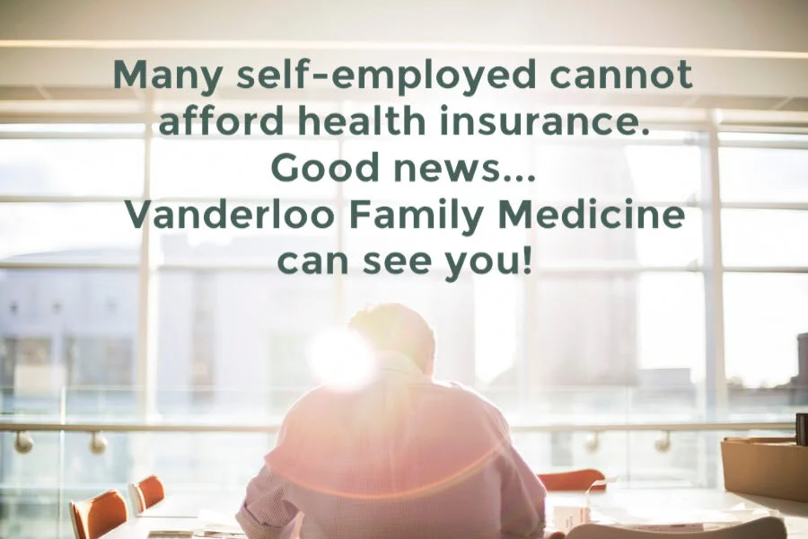 Vanderloo Family Medicine provides an affordable way for the self-employed to seek medical care. We accept patients with, and without, medical insurance. Each patient is charged the same flat-rate of $100 per visit. There are countless scenarios whereby visiting your family physician can save you time and money in serving your healthcare needs. Vanderloo Family Medicine is here to make a difference in your quality of health. Please click on the “Get in Touch” button to learn more, start a conversation, or ask questions about how Dr. Vanderloo can serve your needs, or the needs of you family, today.